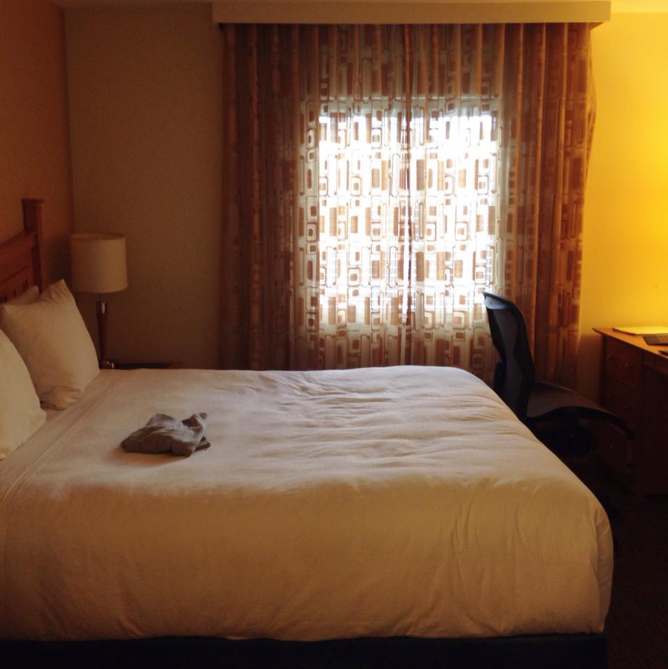 and out of sleep in the middle seat behind a screaming child, I got my suitcase and went outside to wait for the hotel shuttle. I had no idea what to expect. Will there be other people waiting? What color is the shuttle? Am I late? How do I even find the shuttle? Well, after awhile of standing solo I found another girl (actually she talked to me first) and would you believe it, she’s from my hometown! Finally we waved down the shuttle, which was already full of other flight attendants, still managed to fit (I got shotgun), and made our way to the hotel. The window was down allowing my hair to loosen itself from my “neat” bun I thought I was supposed to wear. The driver was a middle aged man that spoke so highly about our company and still managed to scare us as he talked about what the exams would be like. “Oh, you will have to study a lot A LOT.” Okay, yikes. I got my room key, rolled my suitcase over, and opened the door to the most incredible surprise: the best hotel suite I have ever stayed in (okay, the only suite I have ever stayed in). I thought I would have to share a bedroom, but nope. I have my own room with a desk, bathroom, and closet. The bed itself is way too large for me! Not complaining. We have a living room and kitchen too, all fully furnished. My roommate is the best part though. She’s around the same age and pretty darn awesome. It’s been a really good time hanging out; today as soon as we were back from training we sat on the comfy couch, ate left over Chinese food, and watched SVU. Going back to the first day, though, yesterday we just did a whole bunch of necessary file work: finger and ID stuff. We even got to try on our uniforms! But unfortunately, nothing fit me… as usual. Being small is really kind of a bummer a lot of the time. Everything looked ridiculous on me, which basically means I’m going to have to get alterations on everything. I ended up sleeping like a baby last night at 10PM- that’s how tired I was.