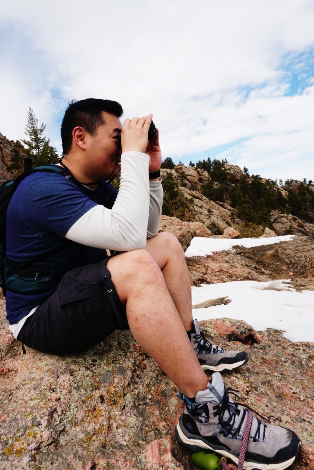 We eventually ended up at Horsetooth Rock. We were going to attempt to continue walking up the rocks, but it was so slippery that we thought best otherwise. Instead, we just sat and enjoyed the view of the reservoir. I highly suggest bringing binoculars. I swore we saw our first Blue Jay here!