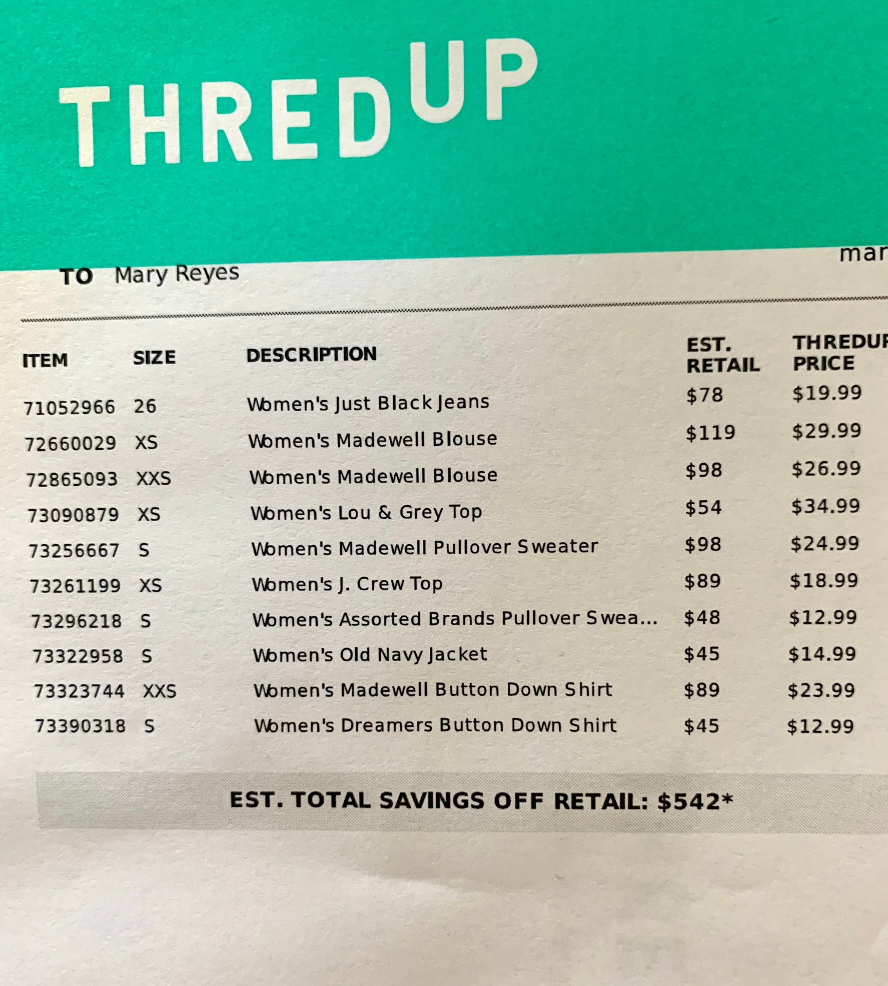 After disinfecting the box, I opened it very eagerly. If you would like to see my genuine first reactions then head to my Instagram and check out my ThredUp Highlight.